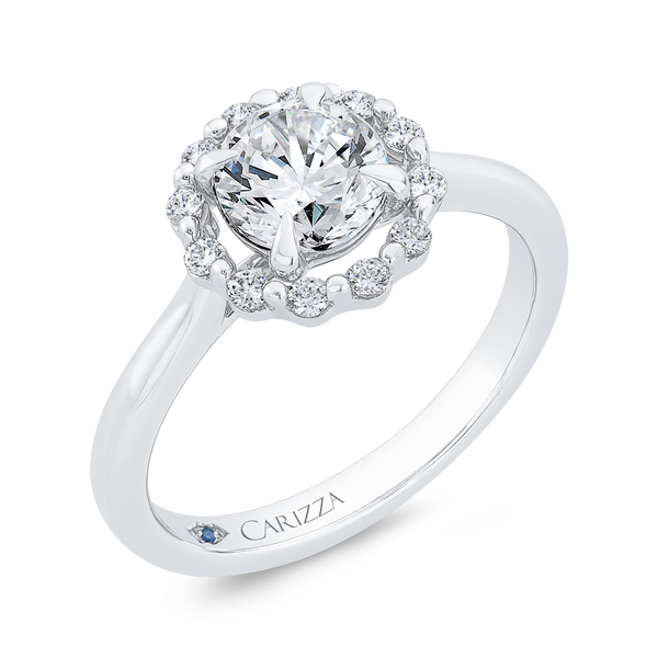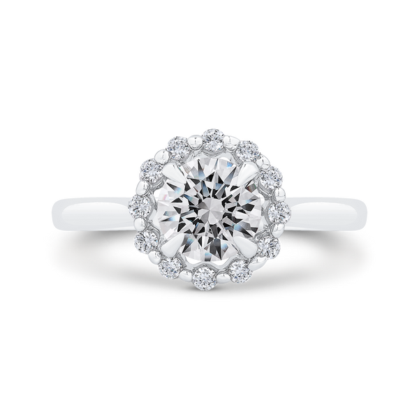 Round Cut Diamond Floral Engagement Ring In (Semi-Mount)